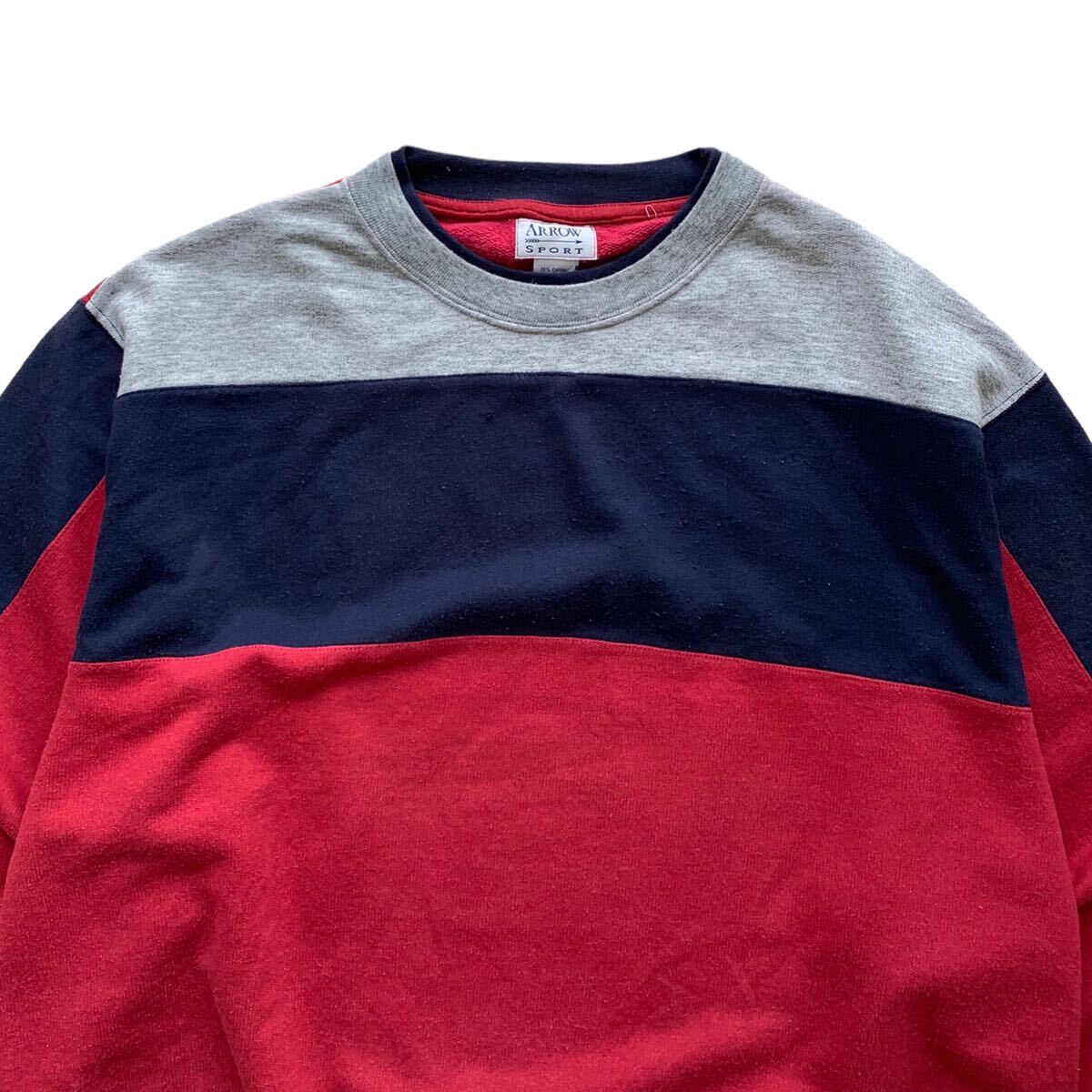 90s ギリシャ製 ARROW SPORT マルチパターン スウェット XL 切替 デザイン ビッグシルエット ビンテージ オールド 收藏