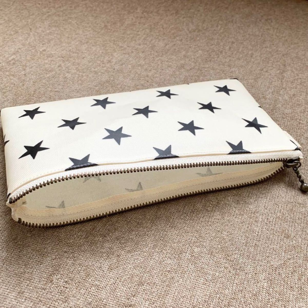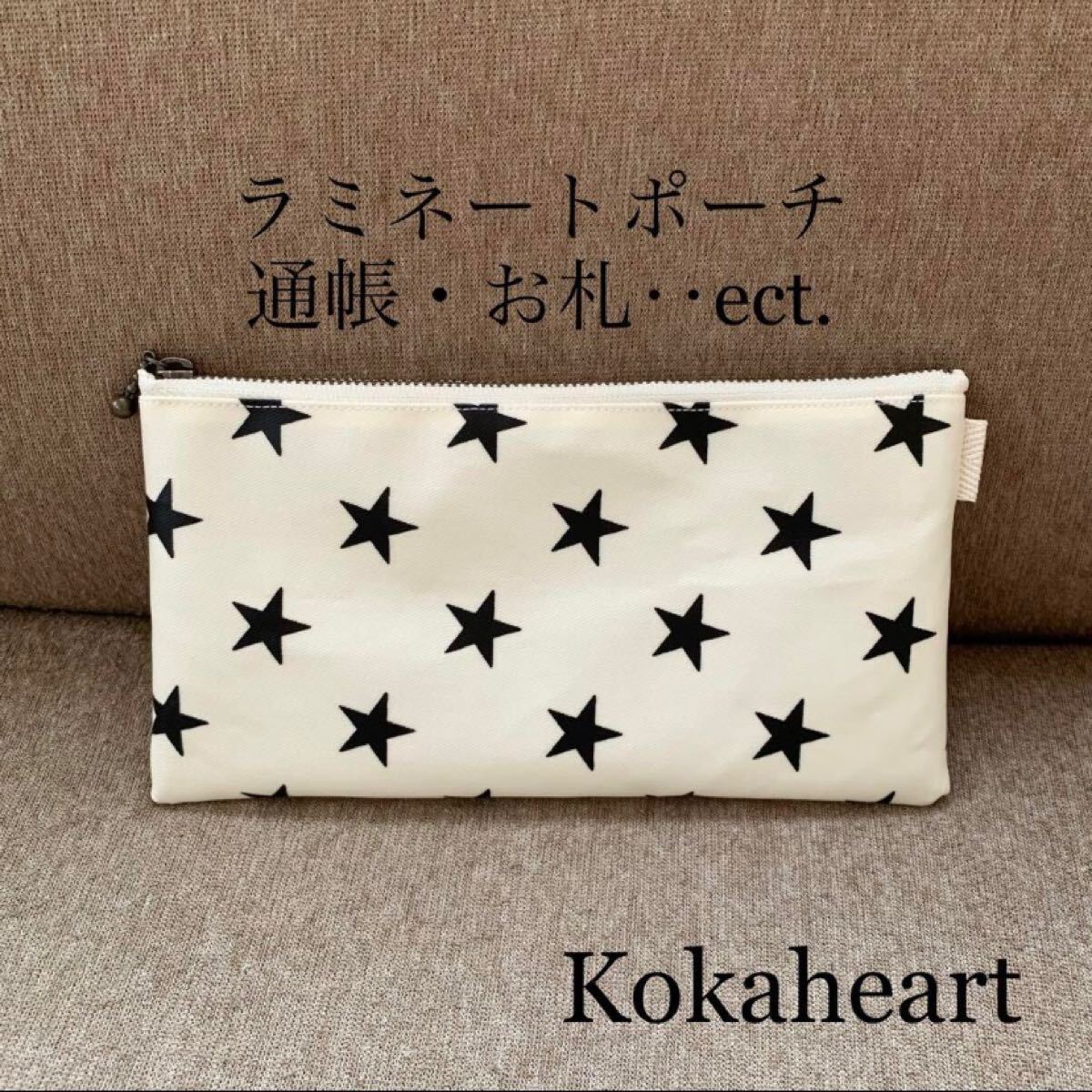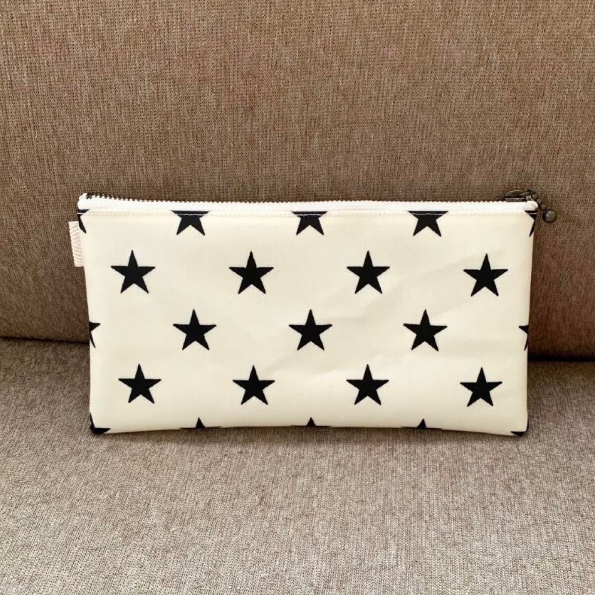 25cmラミネートポーチと20cmフラットポーチのセット☆星柄☆アイボリー ハンドメイド ポーチ 收藏