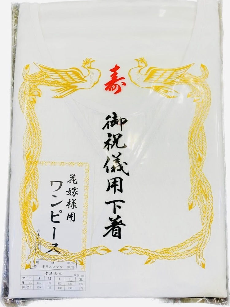 | コメント | 新品の日本製ワンピース肌着の和装小物です。 礼装用で繰り越しが大きめのお着物でも、肌着が見えないよう 抜き衿が深めになっています。 ワンピースなので着用も簡単です。 |