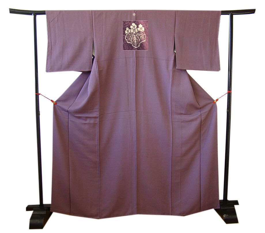 商品説明 | こちらのお品は「袷」ですので10月から5月までお召頂ければと思います。 しなやかで柔らかな手触りのぽってりとした着心地良い重めの極上ちりめん地の生地、 上品な葡萄鼠色地の無地着尺、 八掛は共色(正絹)、背に「五三桐」の紋1ヶ、幅広い年代の方にお召し頂けます。 |