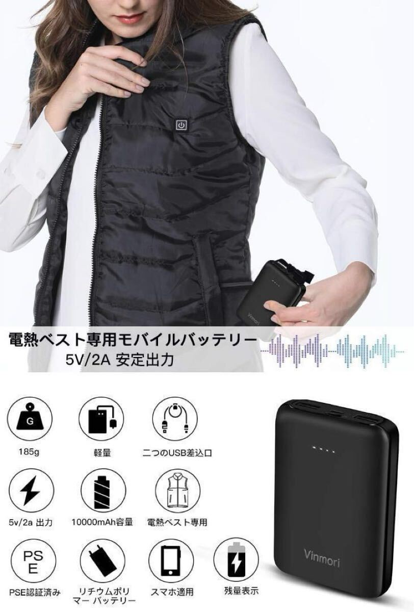電熱ベスト用 モバイルバッテリー 10000mAh 5v スマホ USB 收藏