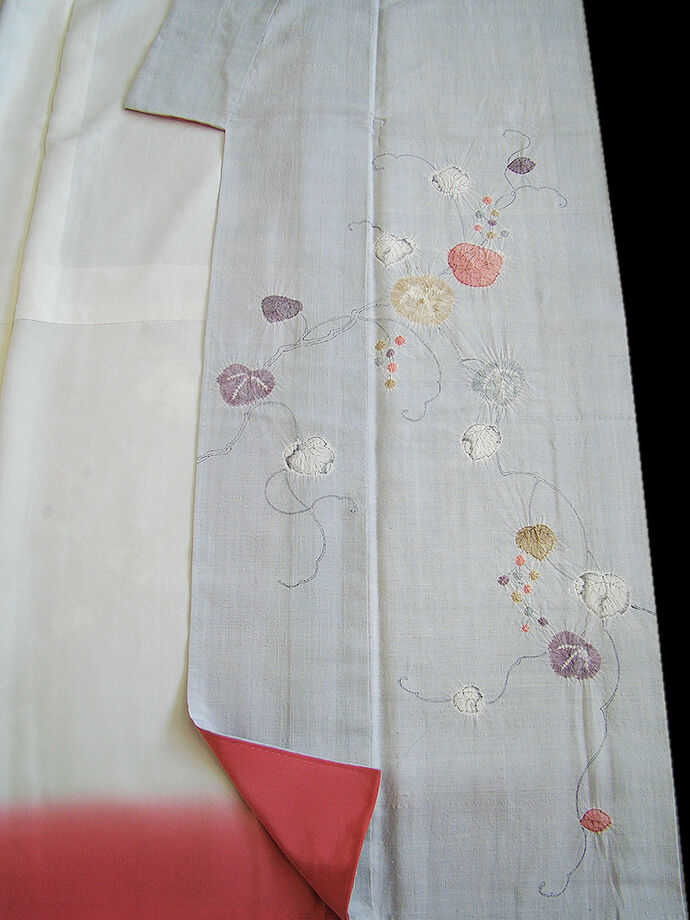 | 商品説明 | こちらのお品は「袷」ですので10月から5月までお召頂ければと思います。 とてもしなやかで柔らかな生紬は、ふっくらとしており着易く動きも軽く、着くずれしない腰の強さを 併せ持ったお洒落着としていつでもどこへでもお気軽にお愉しみ頂けご愛用頂けるお品です。 大変しなやかで柔らかなシワになりにくい着心地良い生紬の生地、 薄い灰青色地に蔦柄の染柄に絞り入り、 八掛はピンク色(正絹)、幅広い年代の方にお召頂けるでしょう。 |