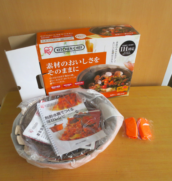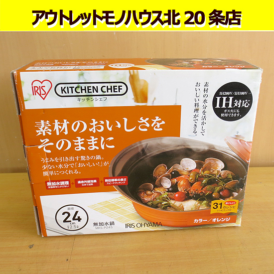 未使用 IRIS OHYAMA 無加水鍋 24cm 容量2.5L MKS-P24S オレンジ IH/ガス対応 レシピ本/シリコン取手付き 札幌 北20条店