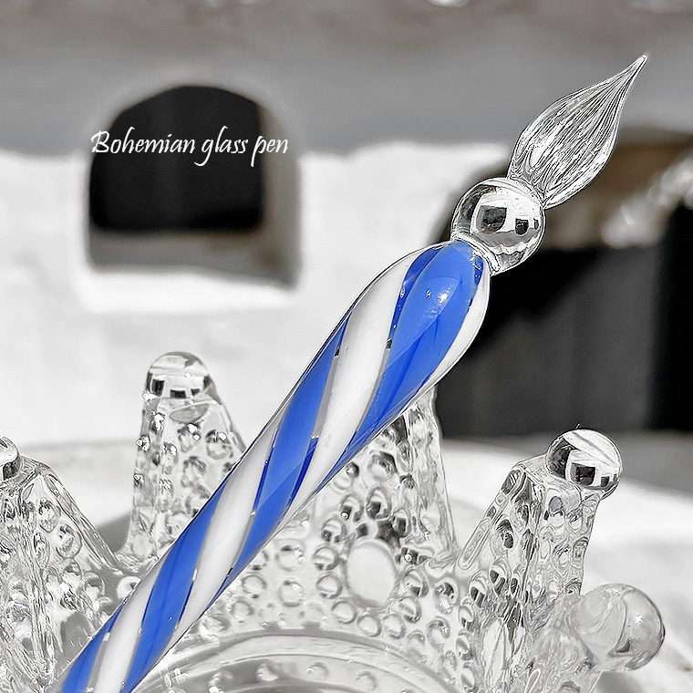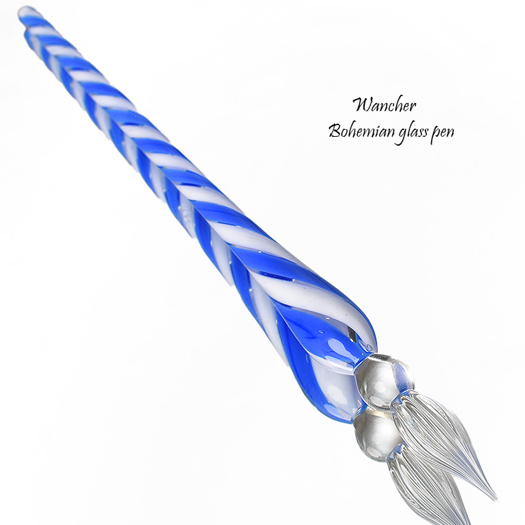■●チェコ・ボヘミアンガラスペン「ルミ」Wancherコレクション スクリューペン 世界三大ガラス 青・白 透明軸 新品 1円~/WGC-D 收藏