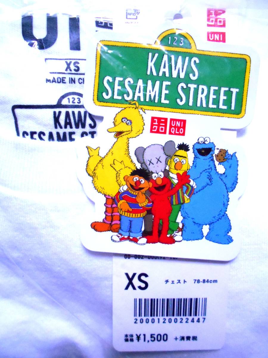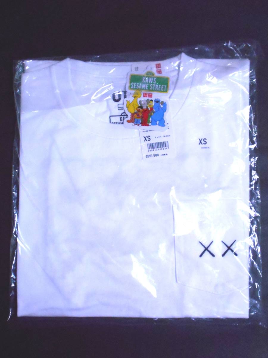 【新品!!】 KAWS SESAME STREET セサミストリート ユニクロ 半袖 Tシャツ 白 ホワイト ポケット 刺しゅう バックプリント XS UT カウズ 收藏