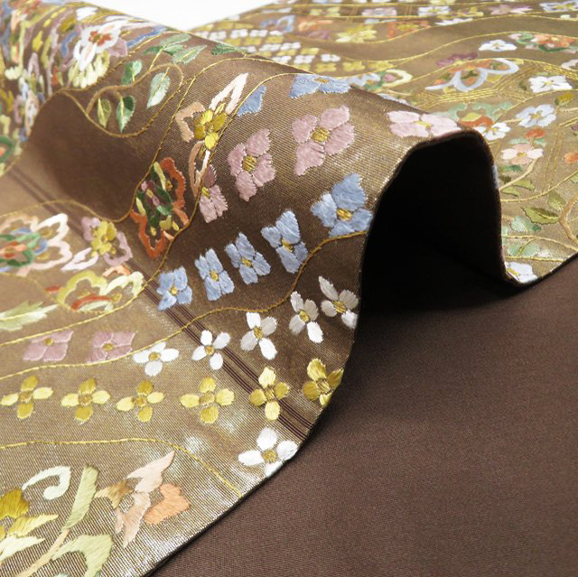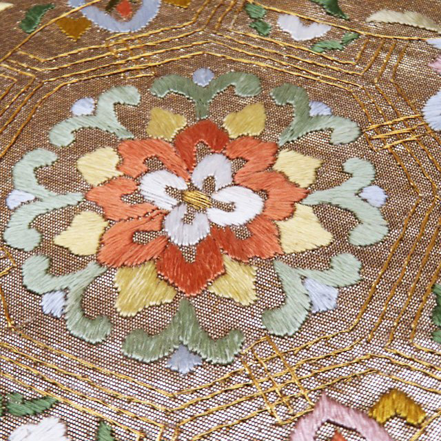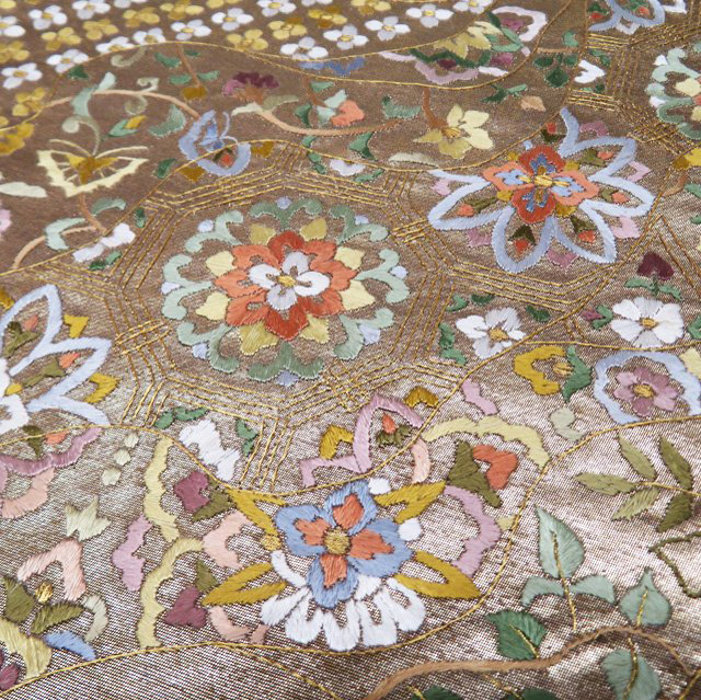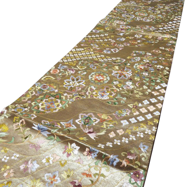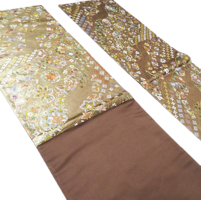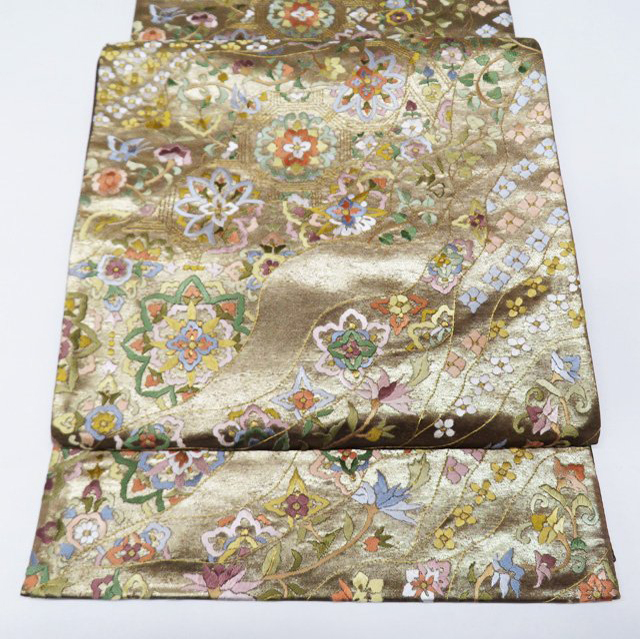 袋帯 中古 リサイクル 蘇州刺繍 中国三大刺繍 華紋 花文 六通 引箔 正絹 フォーマル 金 きもの北條 T698-12 收藏
