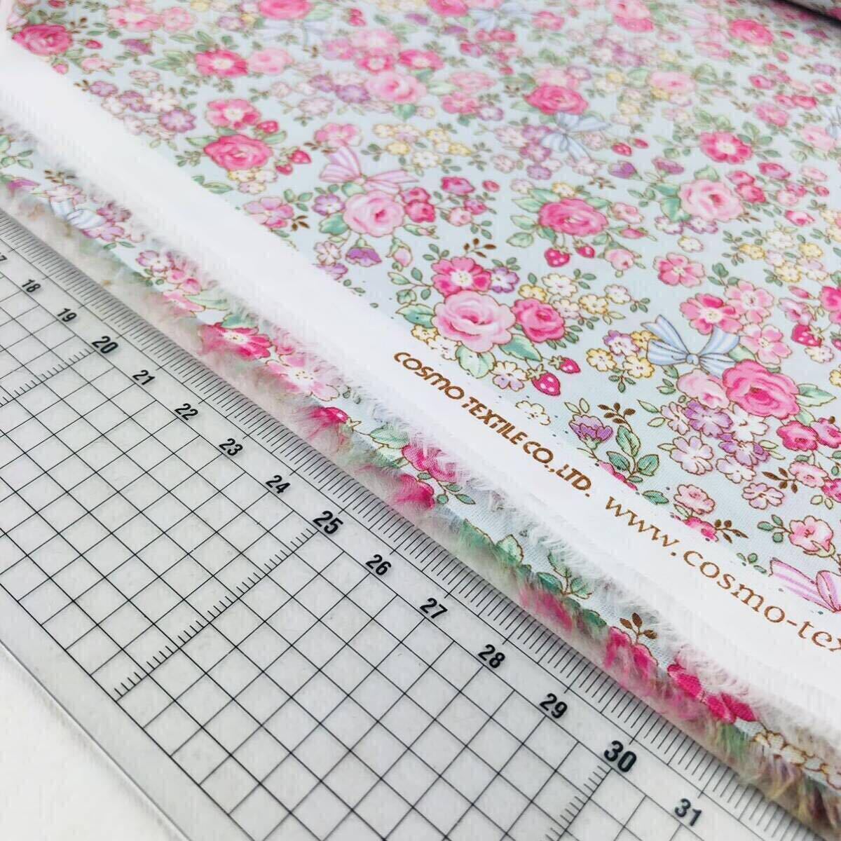 はぎれ 50cm 日本製 かわいいリボンと薔薇のブロード生地 コットン コスモテキスタイル いちご ブロード サックス 收藏