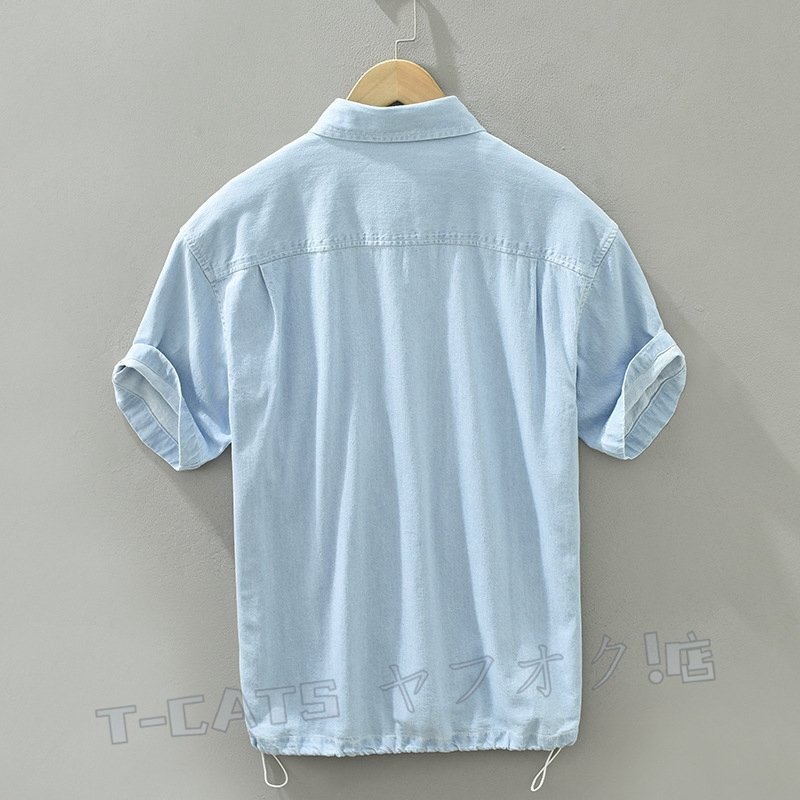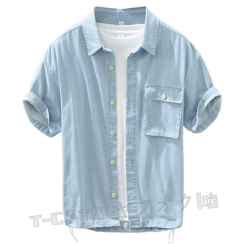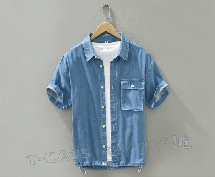 ☆新品半袖シャツ 半袖デニムシャツ メンズ シャツ トップス ウエスタンシャツ トレンド カジュアルダークブルー 收藏