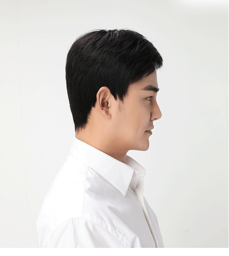 新作上質フルウィッグ メンズウィッグ かつら男性用 ショート脱毛症対策 人毛 カツラ つむじ自然黒普段使い短髪機植えつむじ L(57-62cm) 收藏