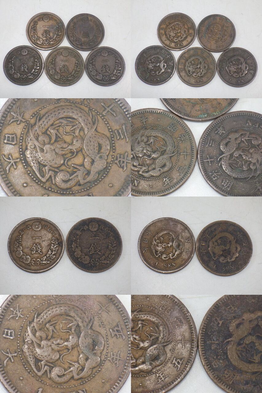 h5G014Z- 日本 近代貨幣 竜1銭銅貨 角ウロコ 明治7.8.9.10年/波ウロコ 明治13.15.16.17.18.19.21年 年号不明有 合計32枚 收藏