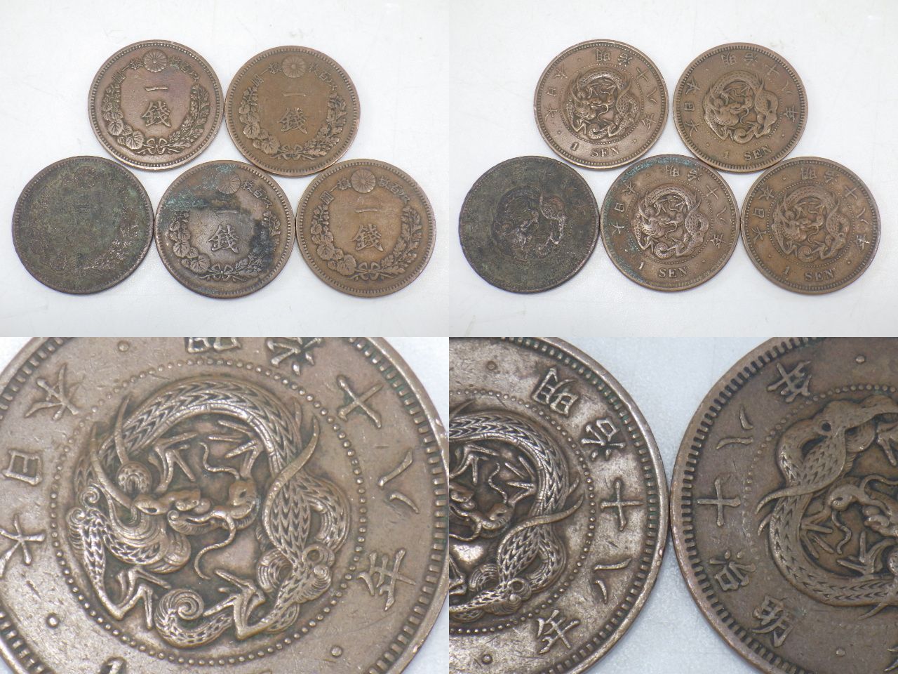 | ★☆h5G014Z 日本 近代貨幣 竜1銭銅貨 角ウロコ 明治7.8.9.10年/波ウロコ 明治13.15.16.17.18.19.21年 年号不明有 合計32枚☆★ | ||