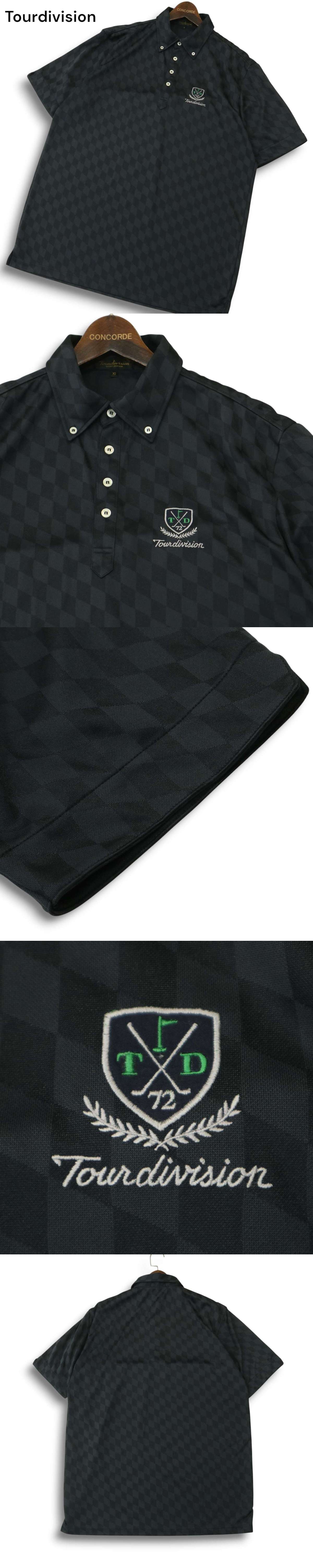 Tourdivision ツアーディビジョン 春夏 ロゴ刺繍★ ダイヤ総柄 半袖 ボタンダウン ポロシャツ Sz.XO メンズ ゴルフ 收藏