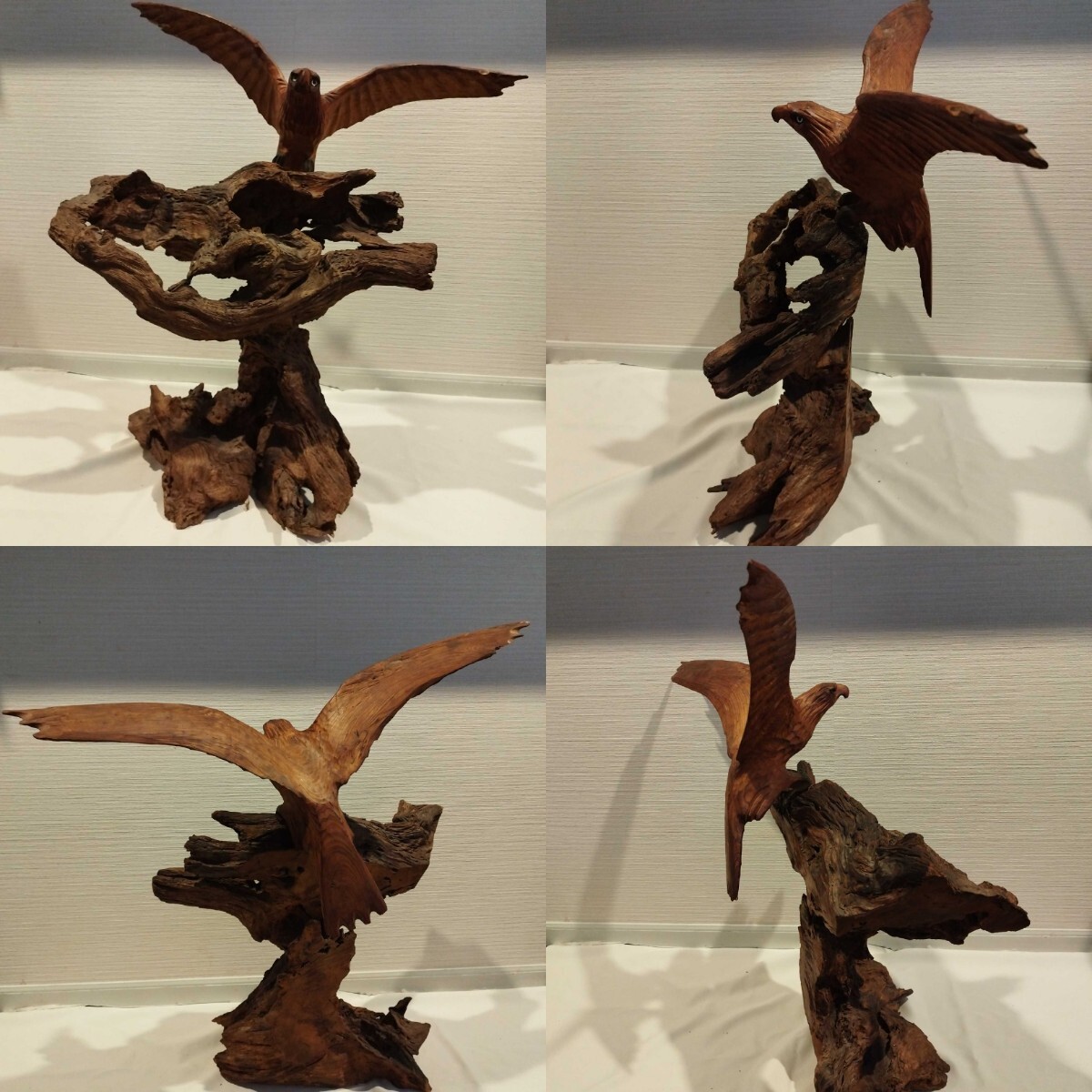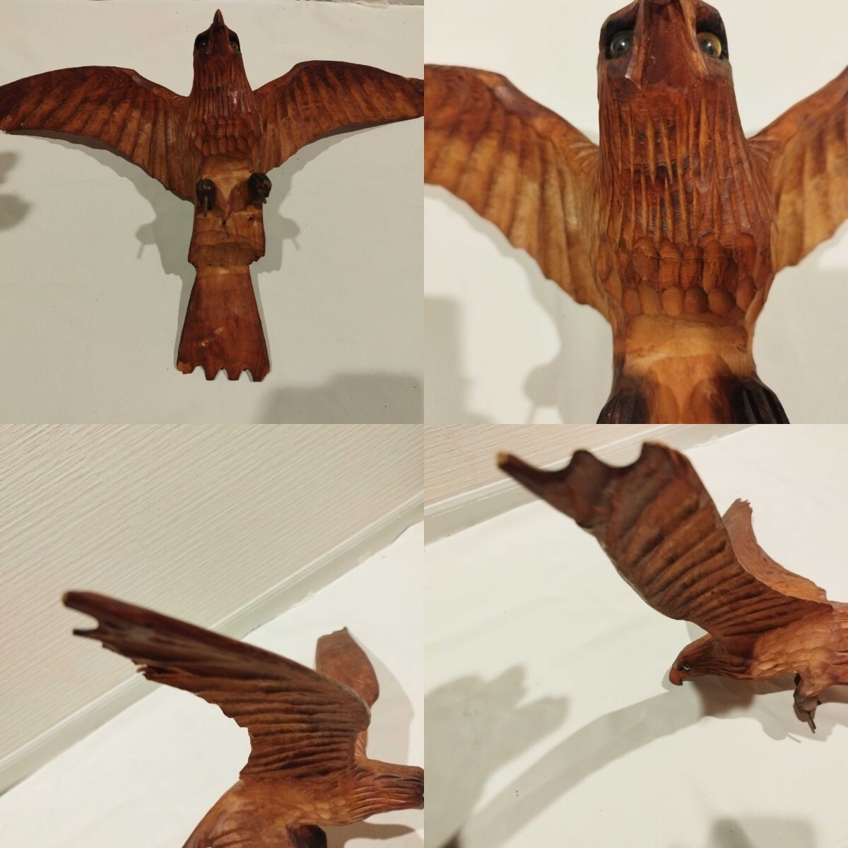 レトロ 木彫り 鷲 鷹 鳥 置物 彫刻 郷土芸術 民藝 オブジェ インテリア 無垢 japanese antique woodin art 和モダン アンティーク 收藏