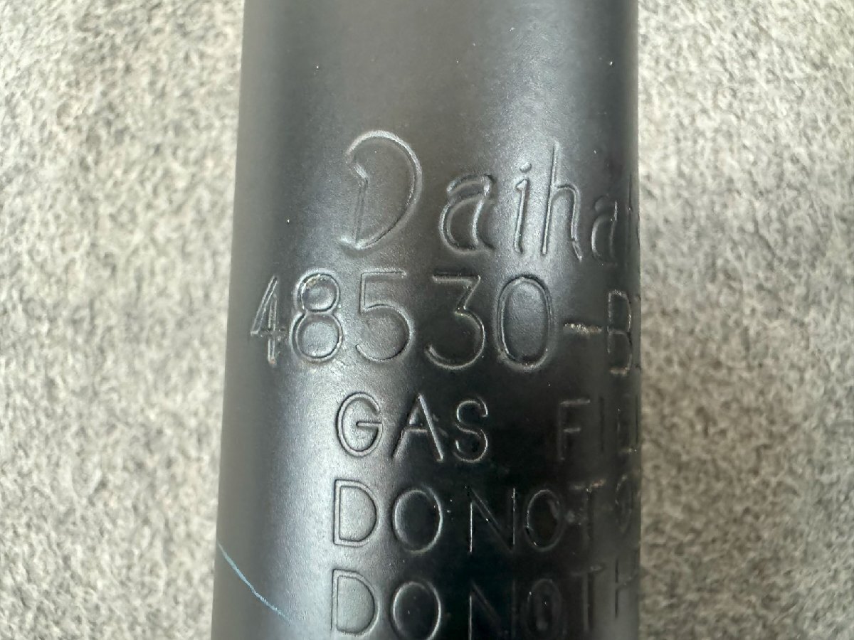 複数の在庫を同じ画像を使いまわして販売しております。 商品の状態が画像と異なる場合があります。予めご了承下さい。 曲り、変形はありません。 サイズ 伸びてる時の長さ(取付穴間)45.4cm 縮めた時の長さ(取付穴間)30.4cm 取付穴径 上15mm 下11.6mm 取付部幅 上下ともに36mm ショック筒径 上47mm 下48.5mm | ||||