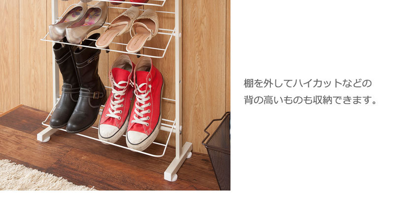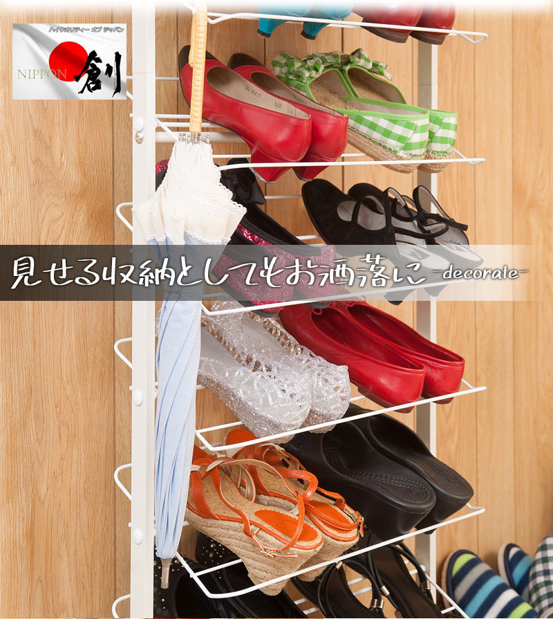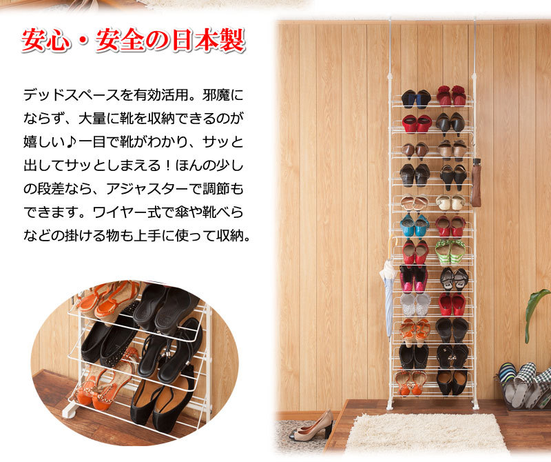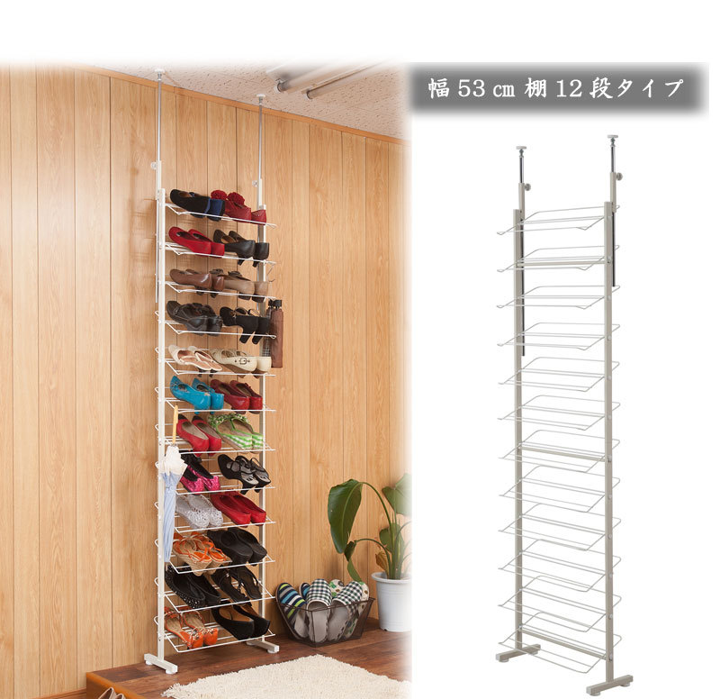 シューズラック 突っ張り 壁面 薄型 幅53cm ホワイト 靴収納 玄関 下駄箱 日本製 收藏