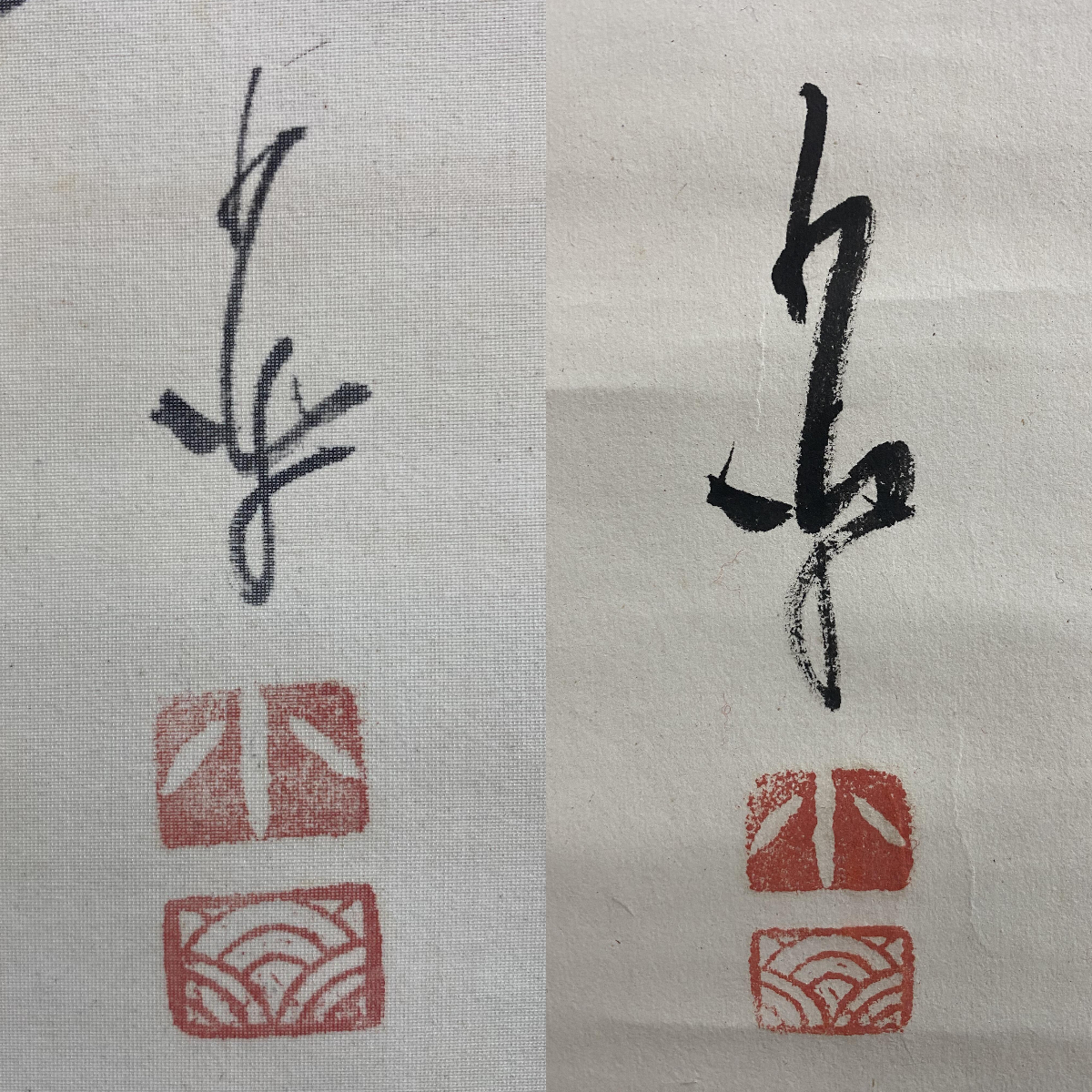 『模写』:工芸や印刷ではなく、人が書いたもの。真作ではないと疑いのある作品、及び作者が不明な作品につきましては、すべて模写と記載いたします。また、所定の鑑定機関による審査が行われていない作品や、独断で真偽を確定できない作品も同様に取り扱います。