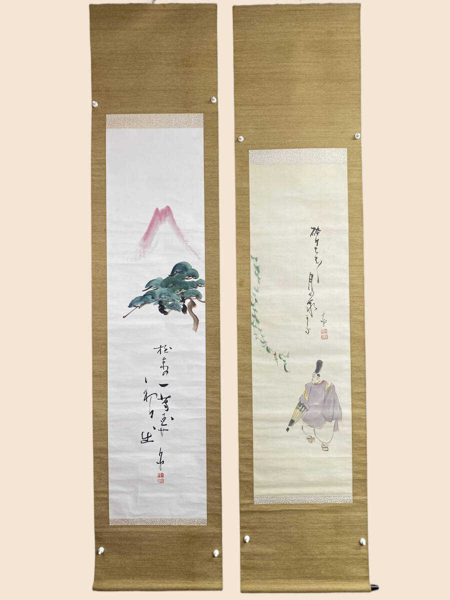 掛軸の軸先ですが、配送中の振動・気温・経年劣化等で外れてしまうことがあります。軸先の外れは、返品の対象にはなりません。大変お手数ですが、お客様ご自身での修復をお願い致します。