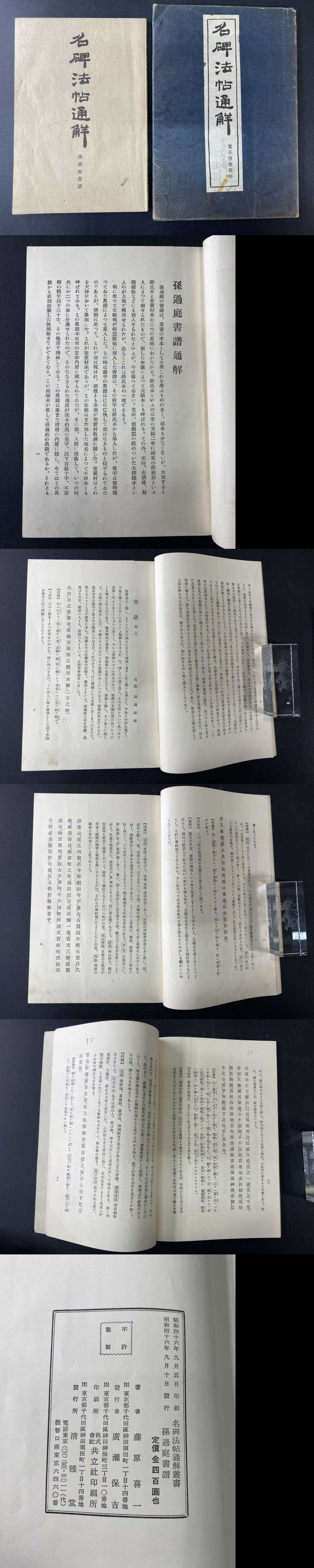 二冊まとめ 名碑法帖通鮮 孫過庭書譜 集王書聖教序 昭和四十六年 初版 清雅堂 藤原喜一 古書 研究 書籍(10911) 收藏
