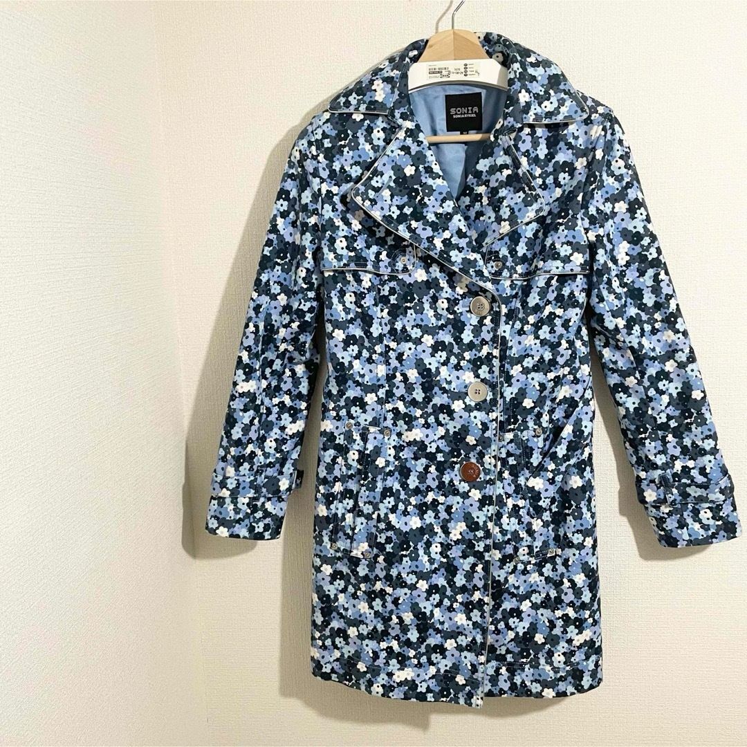 【美品】ソニアリキエル 帆布生地 トレンチコート ブルー 花柄 收藏
