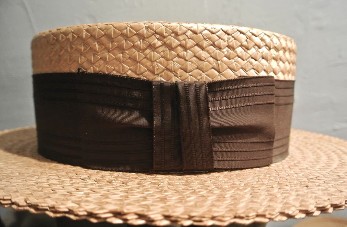 40s Vintage Dobbs boater hat 1/4 58cm ヴィンテージ ドブス ボーターハット カンカン帽 ブラウン 茶 ストローパナマ ステットソン 麦わら 收藏