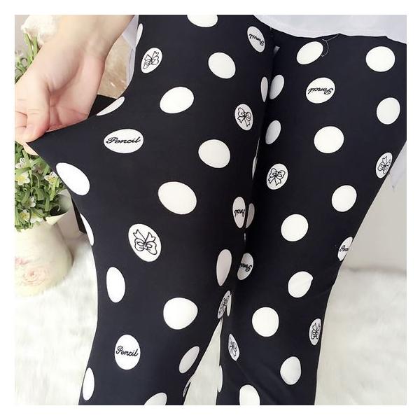 レディース 可愛い水玉柄 レギンスパンツ ブラック レギパン レギンス 收藏