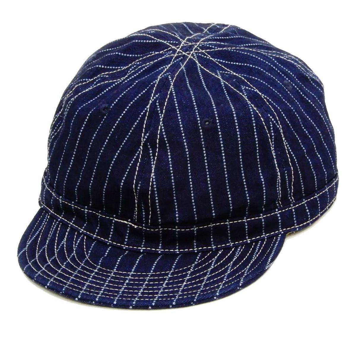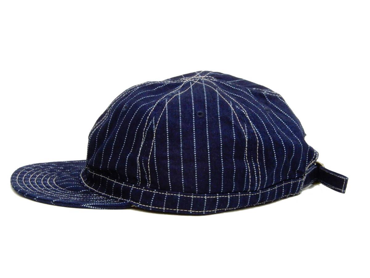 六方パネル インディゴウォバッシュストライプワークキャップ サイズ調整用背面ベルト付き アメカジ 通年用 帽子 日本製