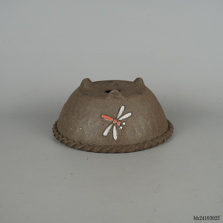 盆栽鉢 文山 越前文山 小型 長辺 約 15.7cm 鯖江園芸 丸鉢 色絵 蜻蛉 とんぼ トンボ 観賞用 現品 新品 收藏