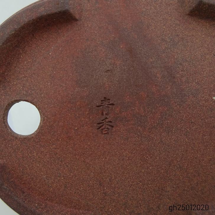 盆栽鉢 青香 小鉢 長辺 約8.2cm 楕円鉢 泥物 現品 收藏