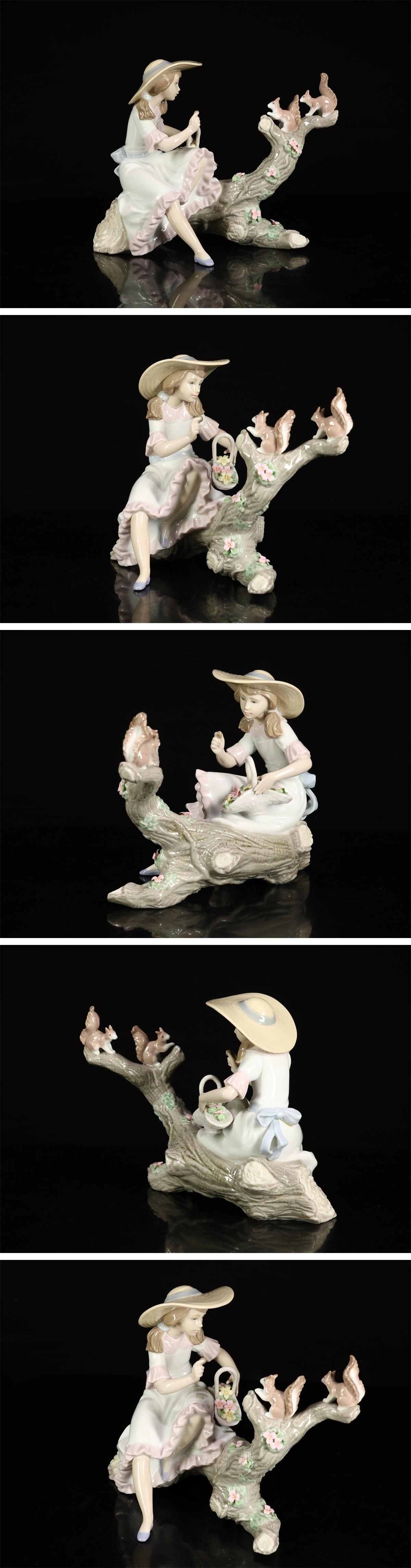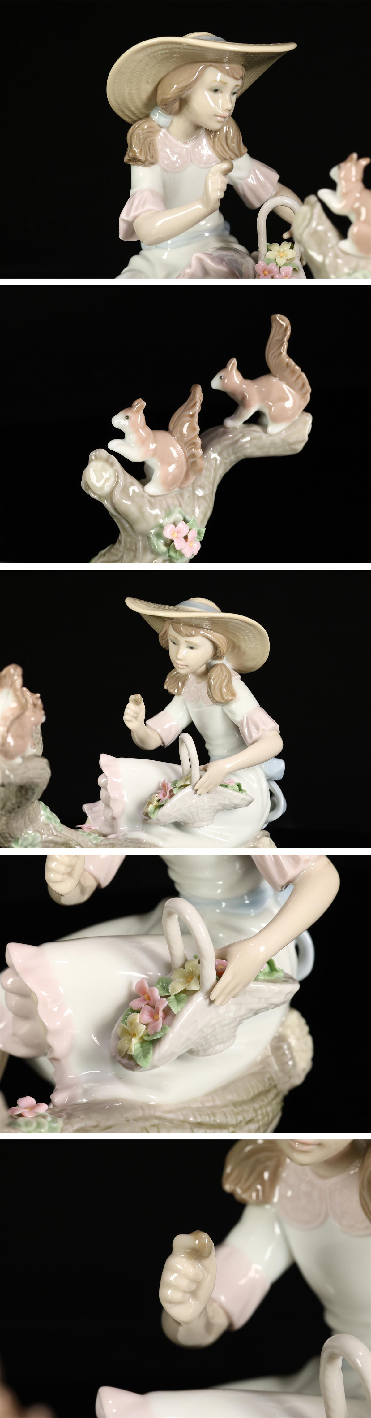 【吉】CM622 絶版品 LLADRO 【リヤドロ】 フィギュリン 磁器人形 栗鼠と少女 置物 高17㎝ 幅22㎝/美品! 收藏