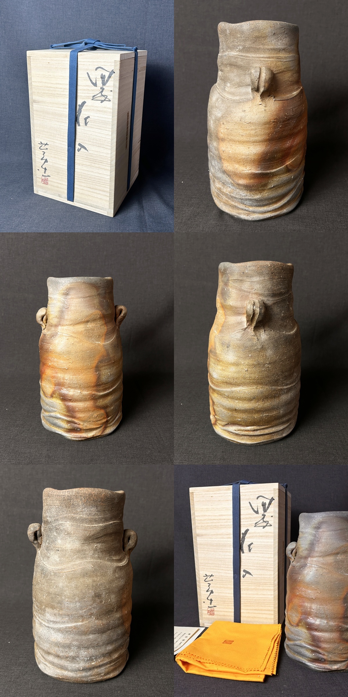 TU 備前焼 佐藤苔助 造 双耳 窯変 花入 共箱 共布◇花瓶/花器/花生/飾壷/壺/置物/華道具/茶道具/陶器/工芸/民藝/焼物/時代/骨董/古美術 收藏