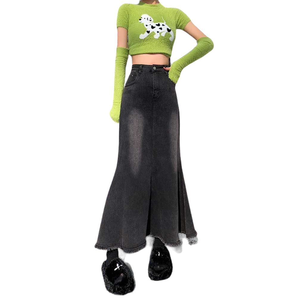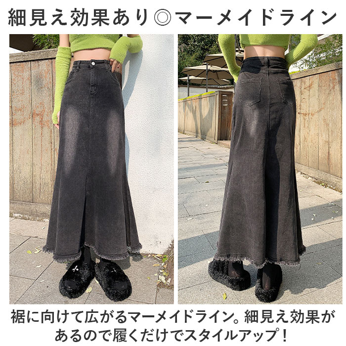 ☆ ブラック ☆ L ☆ デニムスカート ロング 春 夏 秋 冬 おしゃれ mlda07 デニムスカート マーメイド ロングスカート スカート ボトムス 收藏