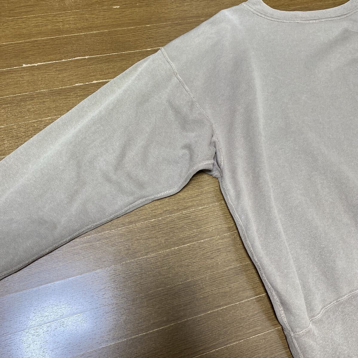 掠れたプリントに色褪せたボディ、長めのリブとヴィンテージスウェットのような雰囲気の1着