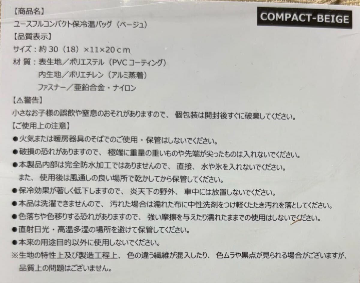 【材質】(表生地)ポリエステル〈PVCコーティング〉(内生地)ポリエチレン〈アルミ蒸着》