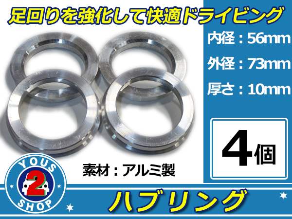 【ハブリング】【アルミ製】【外径73mm×内径56mm×厚さ9mm】【4枚セット】ホイール固定 タイヤ スペーサー 收藏