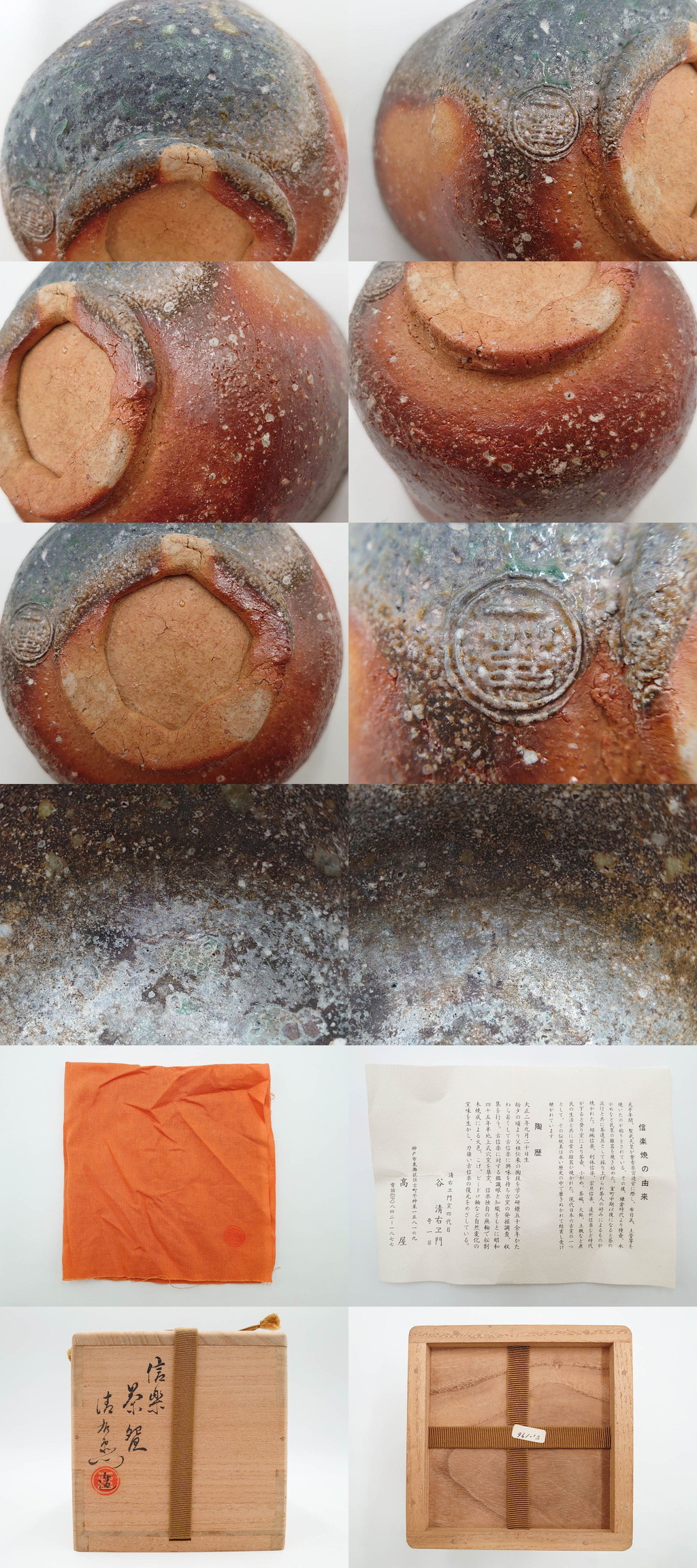 R-084373 四代 谷清右衛門 信楽焼 約11cm 3.4寸 茶碗(抹茶碗、茶器、茶陶、裏印、和食器、共箱付、三寸四分) 收藏