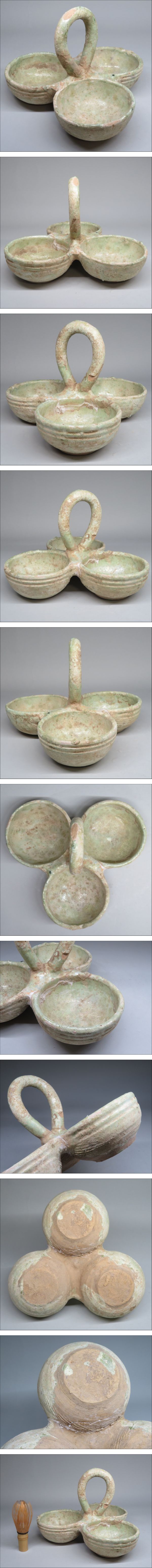 「都内コレクター所蔵品」漢時代 取っ手付き三連皿 ◆中国美術/古美術・骨董品 | ||