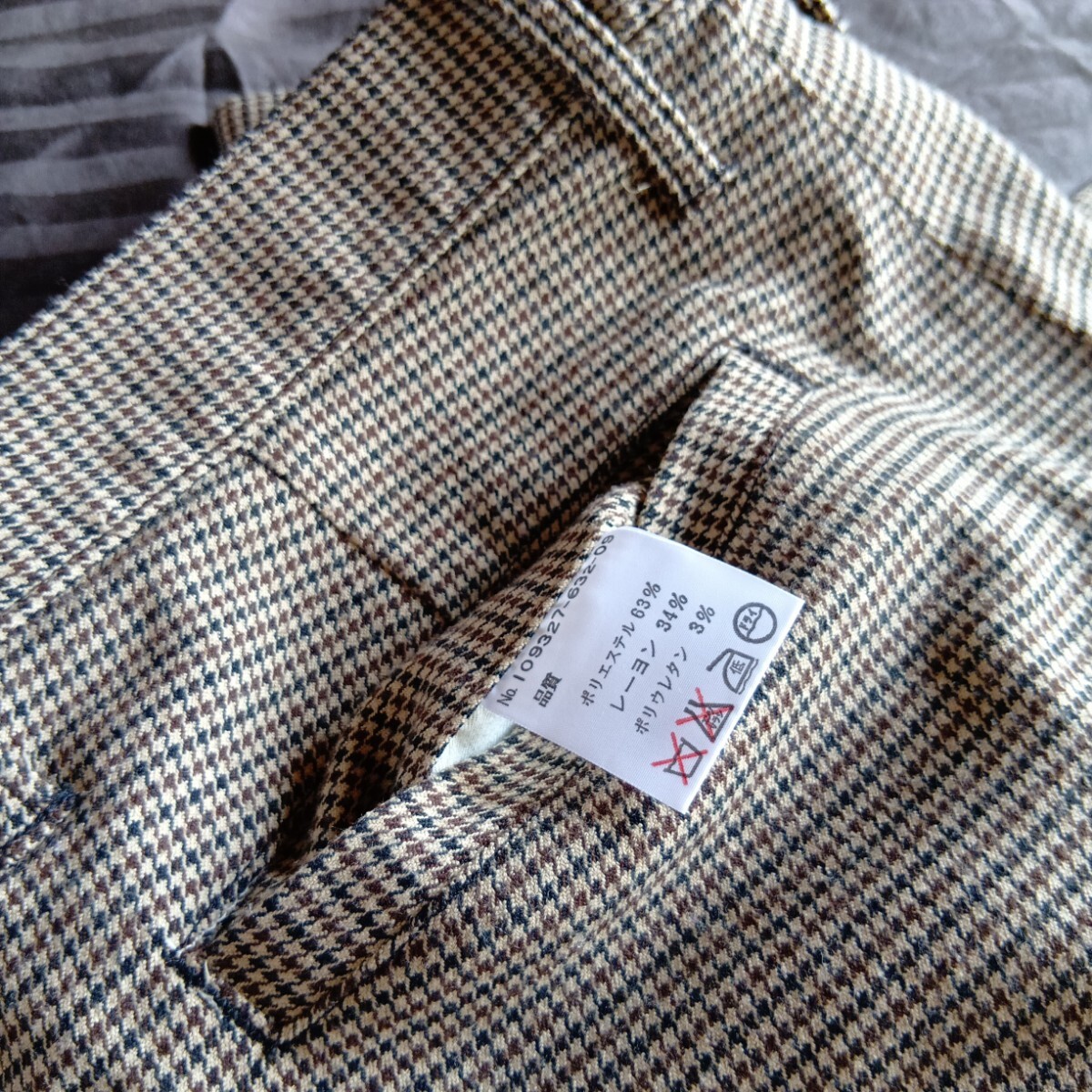色目はベージュで遠目には無地に見えますが、マイクロ千鳥格子の生地柄がさりげなく、おしゃれ感が高いアイテムです。