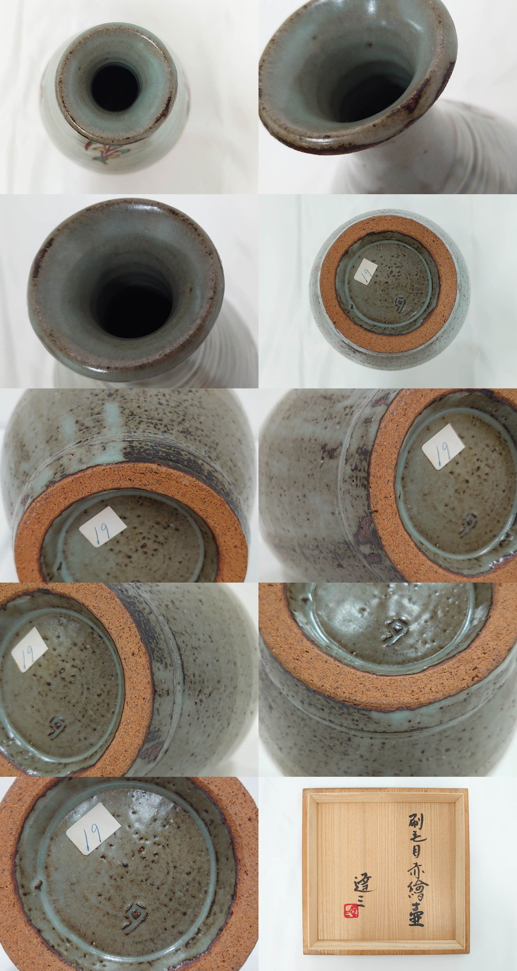 R-084763 人間国宝 島岡達三 刷毛目 赤絵 高さ 約36cm 格調高い雰囲気を醸し出す壷(壺、花瓶、花器、花入、花生、共箱付) 收藏