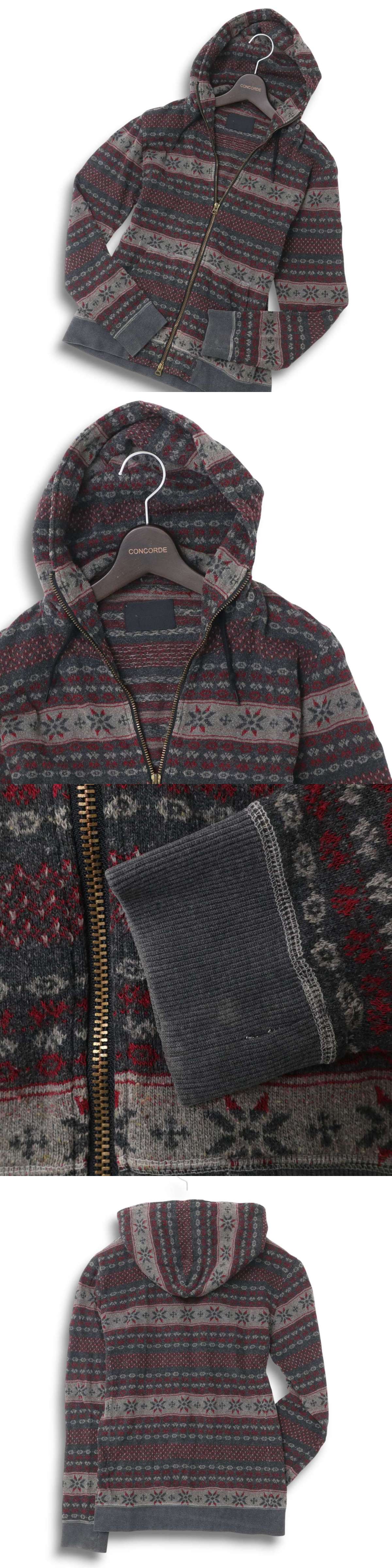 LOUNGE LIZARD ラウンジリザード 秋冬 ノルディック柄★ ダブルジップ フーディー パーカー Sz.2 メンズ 日本製 收藏