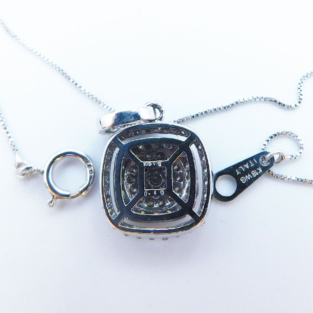 ★ダイヤモンド0.40ct★K18WG◆シック◆スクエア◆4月誕生石◆ネックレス◆【送料無料】 收藏