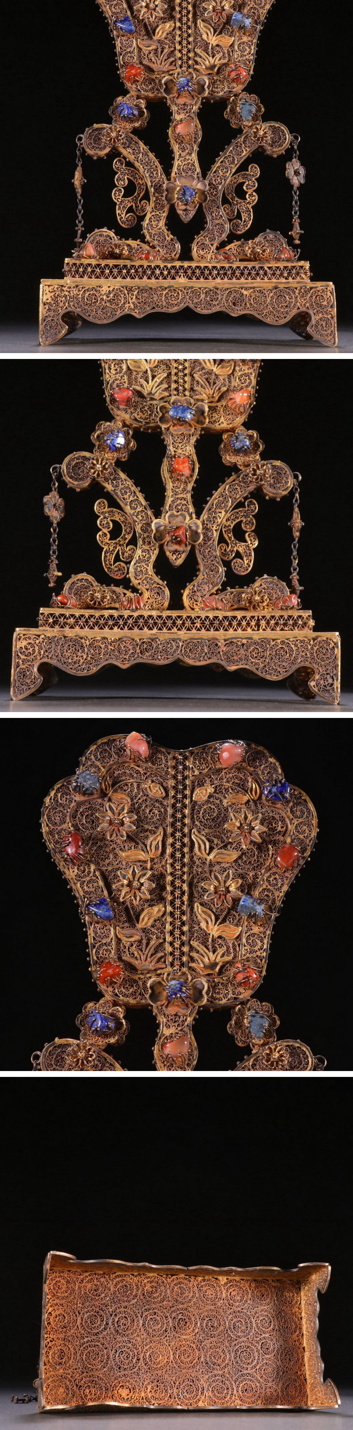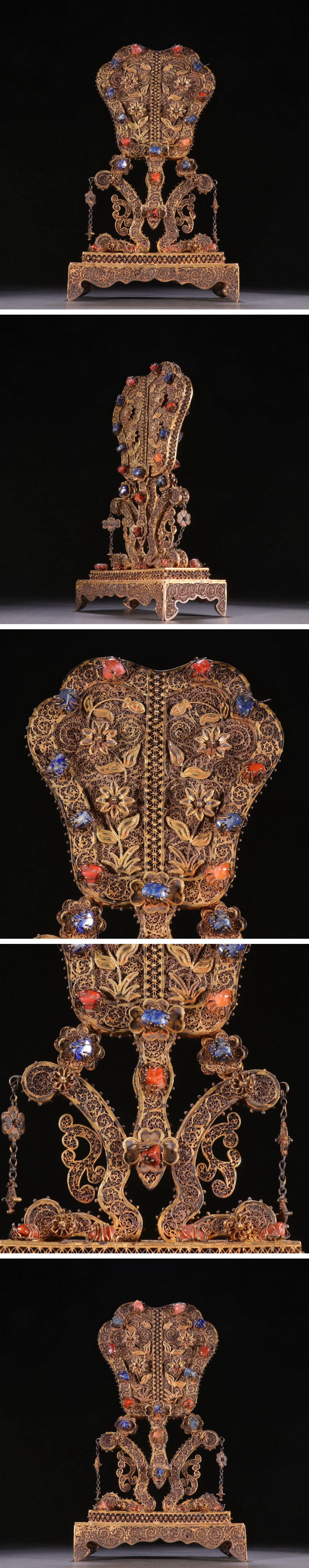 【清】某有名オークション購入 清時代 純銀材 象嵌寶石 扇子紋彫り物 材質保証 当時物保証 古置物 古擺件 古美術 時代コレクション7L9-GF 收藏