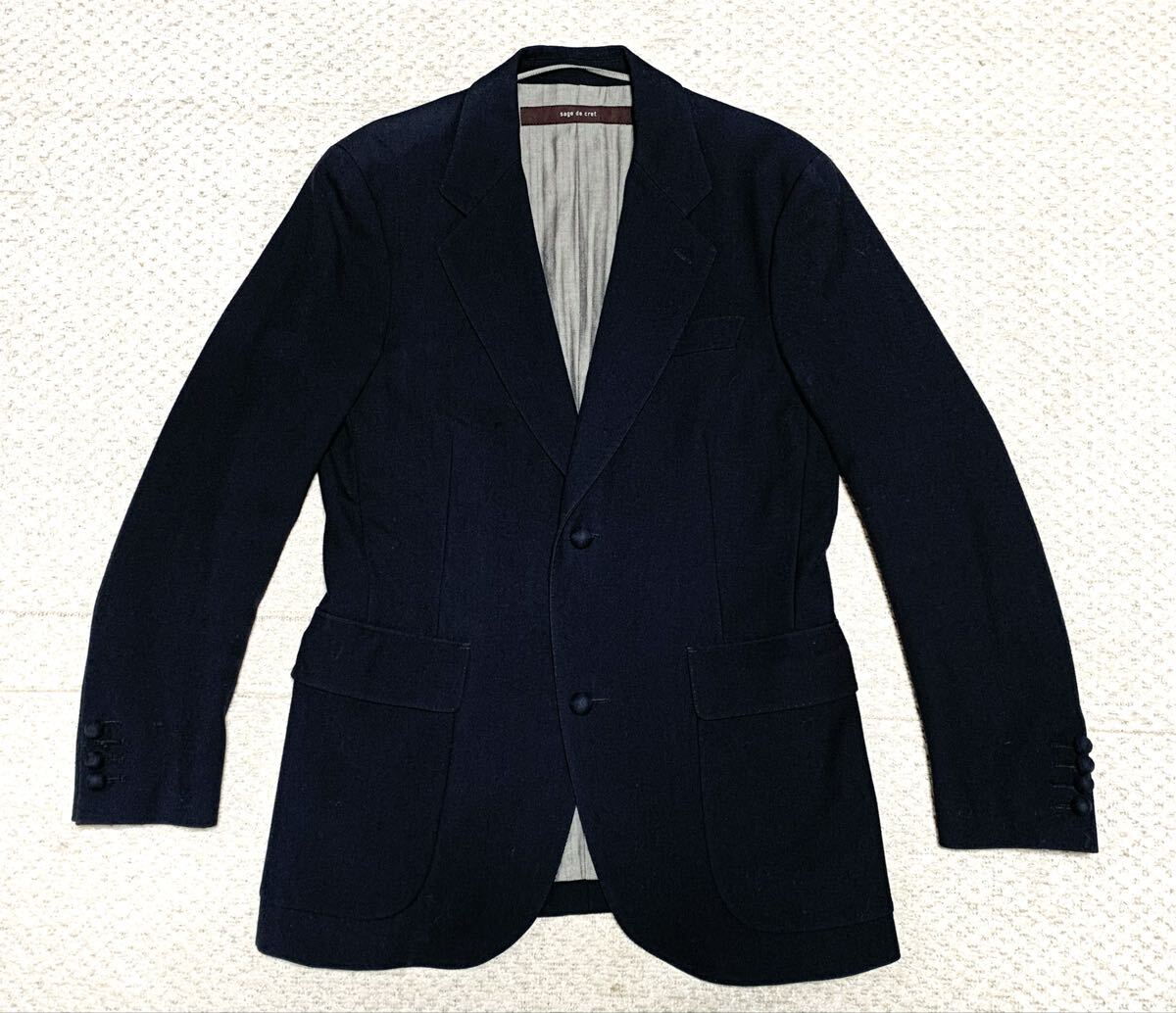 美品:sage de cret(サージュデクレ).テーラード ジャケット L(黒/厚手 ウールサージ/前2B/本切羽/お台場仕立て/肩46幅52/workers type) 收藏
