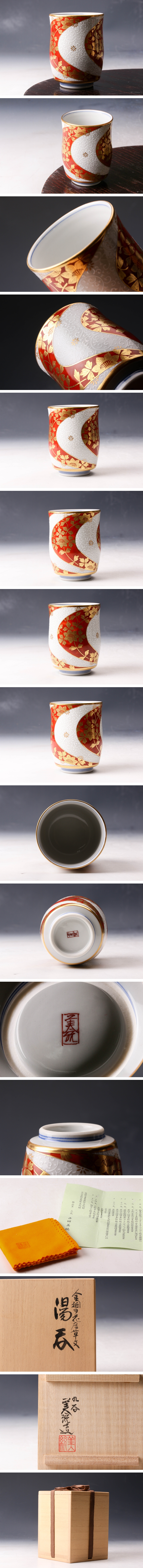 【佳香】人間国宝 三代 吉田美統 金欄手花唐草文 湯呑 共箱 共布 栞 本物保証 收藏
