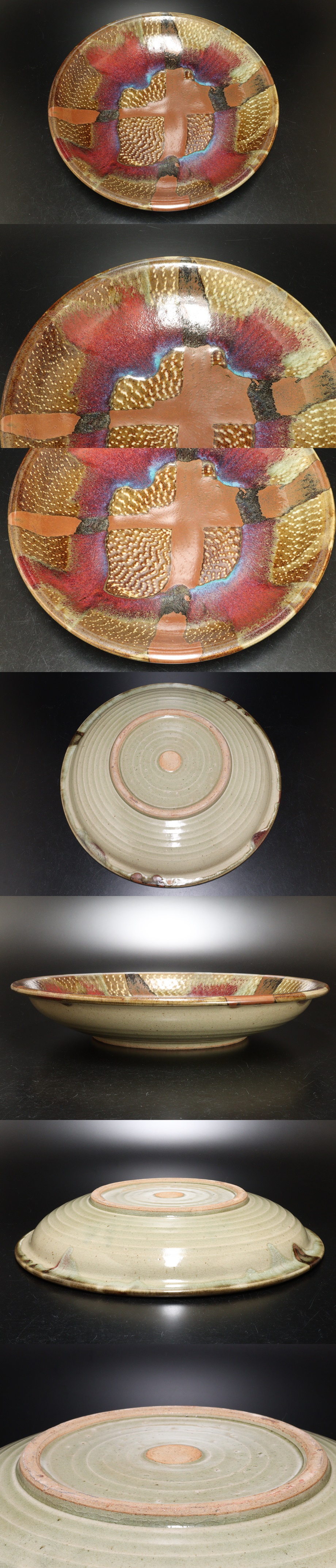 P 益子焼 大皿 直径45.5cm 約 直径45.5cm×高さ8cm 收藏
