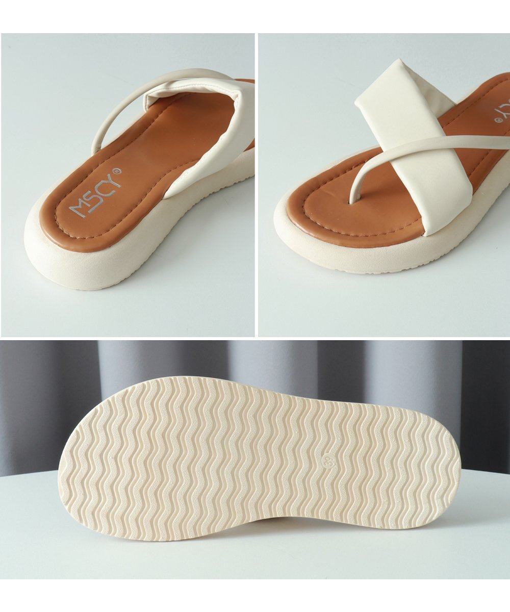 タウンユースからリゾートまで使える、アシンメトリーなデザインのトングサンダル。