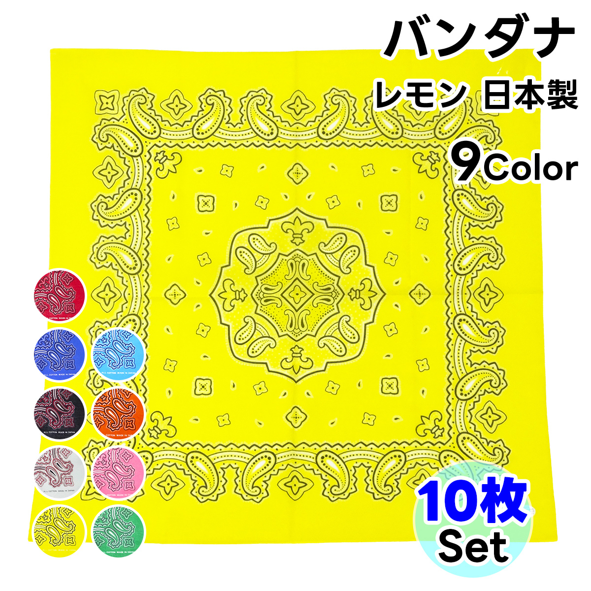 バンダナ ペイズリー柄 レモン 10枚セット 日本製 約53cm×53cm メンズ ハンカチ バンダナキャップ 汗止め 登山 收藏