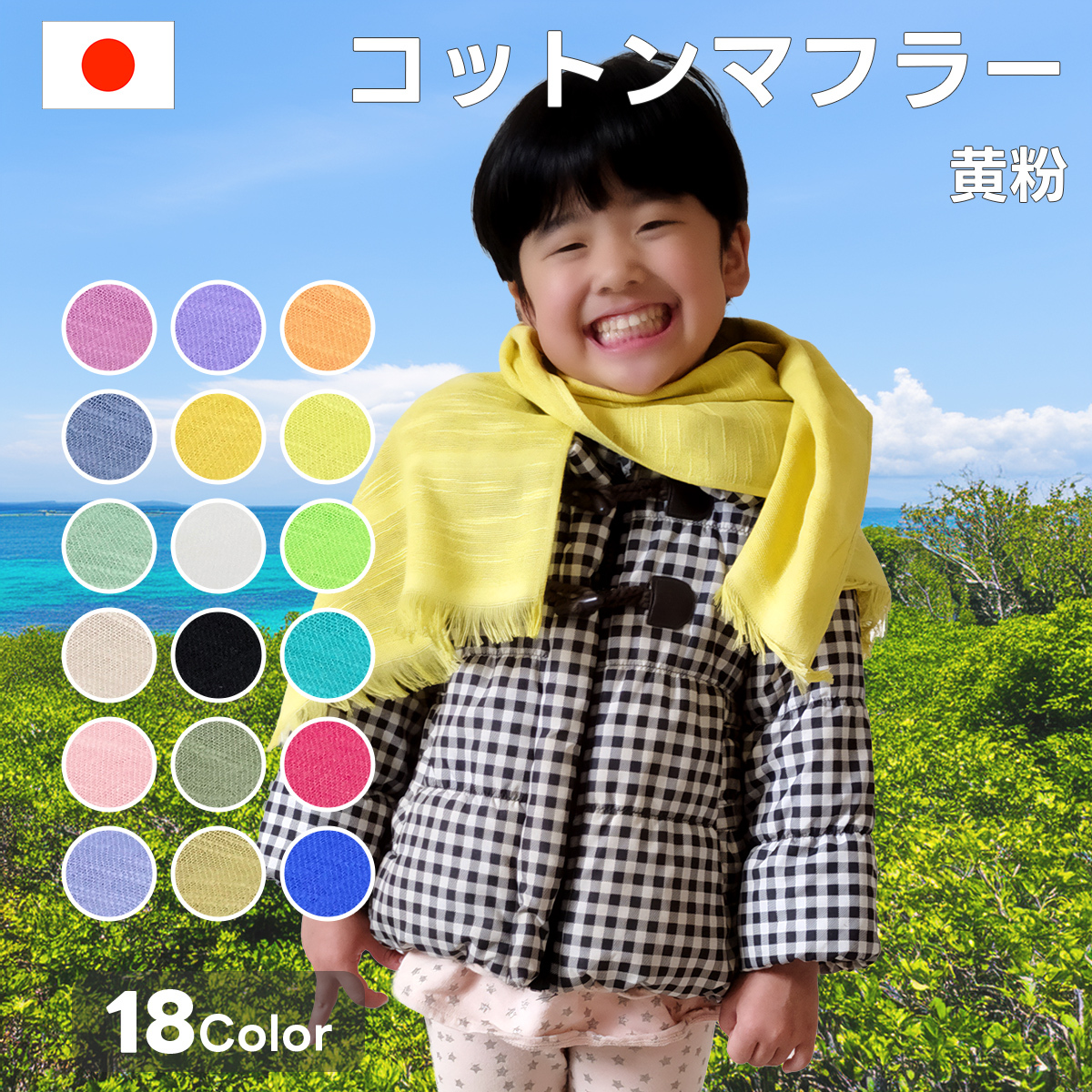 マフラー コットンマフラー 黄粉 日本製 無地 レディース タオルマフラー キッズ メンズ ストール 綿 年中 收藏