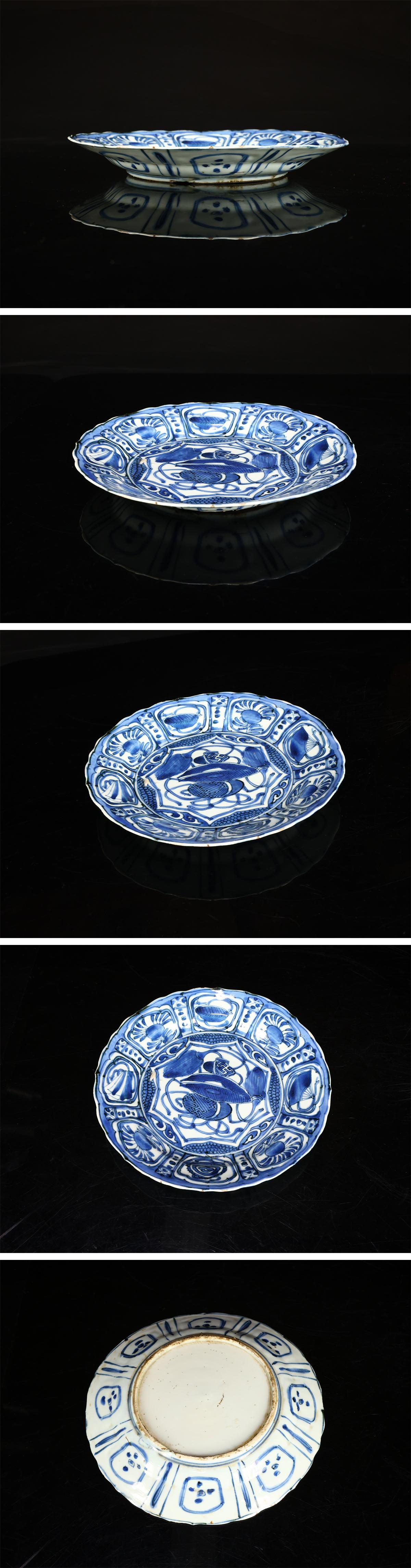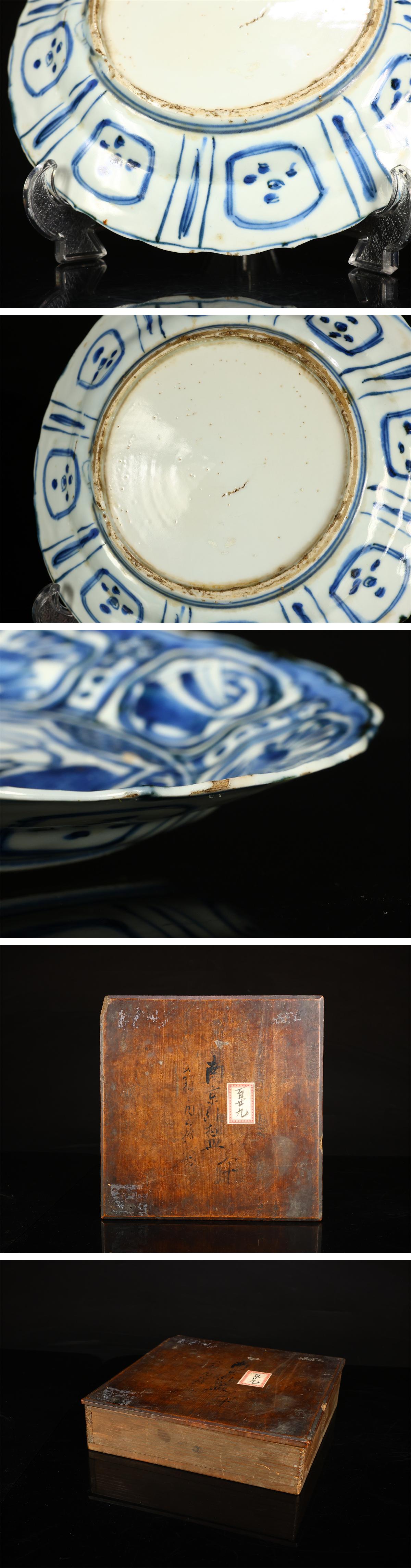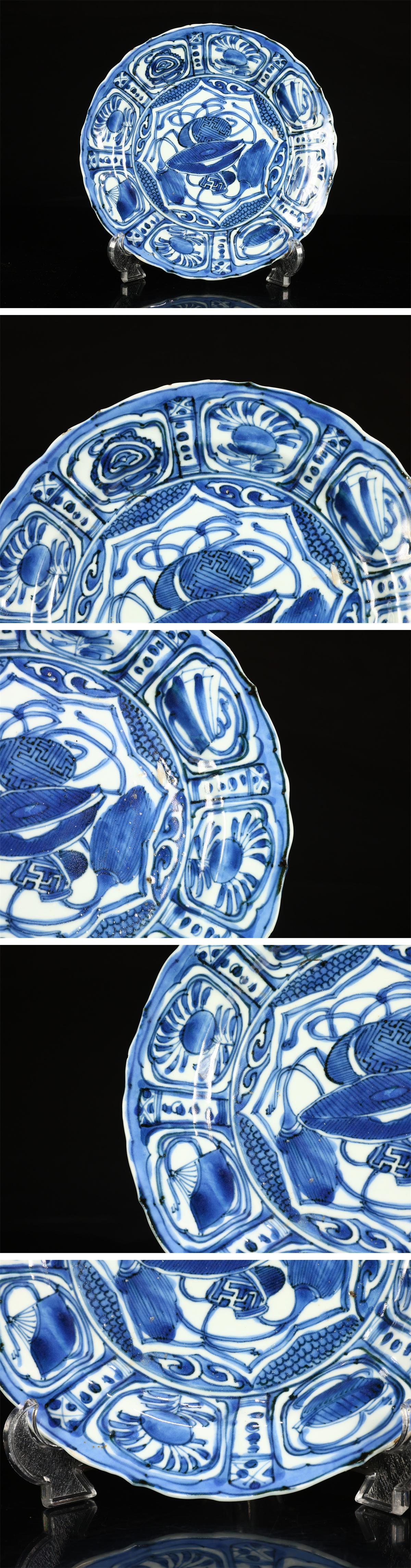 【吉】CN239 唐物 【明代景徳鎮製】 青華宝尽文皿 径21㎝/箱付 時代の虫食いありN! 收藏
