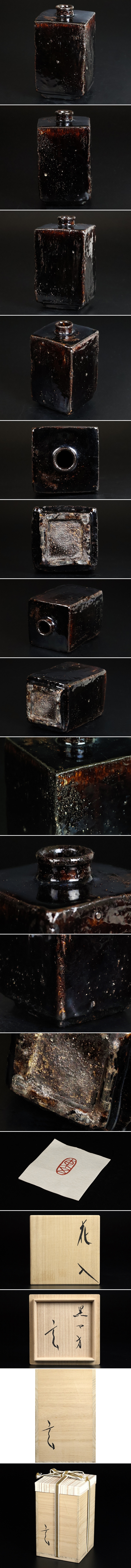 【 小林東五 】最上位作 黒四方花入 共箱 保証 16961 收藏