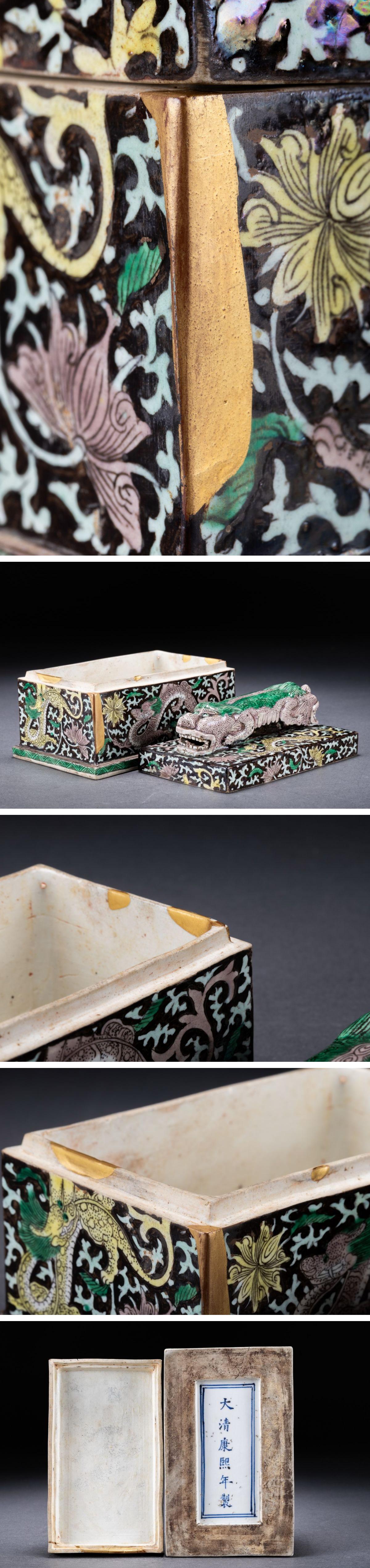 【華】時代舊藏 清時代 大清康煕年製 粉彩 緑釉雲龍紋盖合 当時物保証 時代物 古美術 骨董品A25070300-VQ 收藏